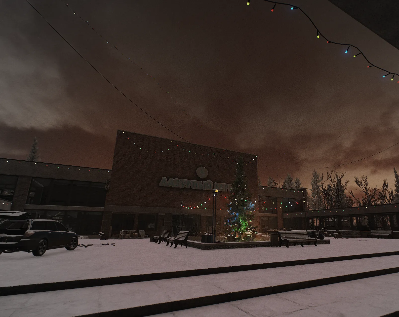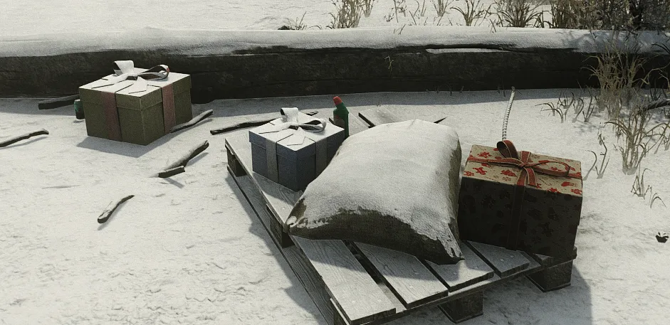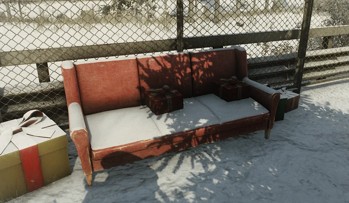 The mall on Interchange is beautifully decorated throughout, but it is outside that you will want to be to find the Christmas Tree. Gone is last year's village near the stage and instead it's been pushed back to where the Scav Camp is. A red sofa near the tree has a chance to spawn gifts.