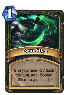 Give your hero +2 Attack this turn. Add 'Second Slice' to your hand.