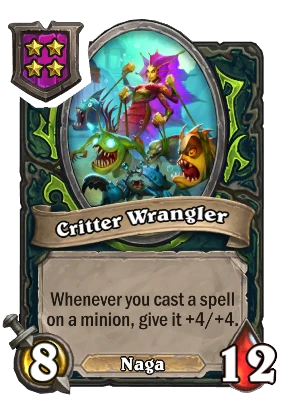 Whenever you cast a spell on a minion, give it +4/+4.
