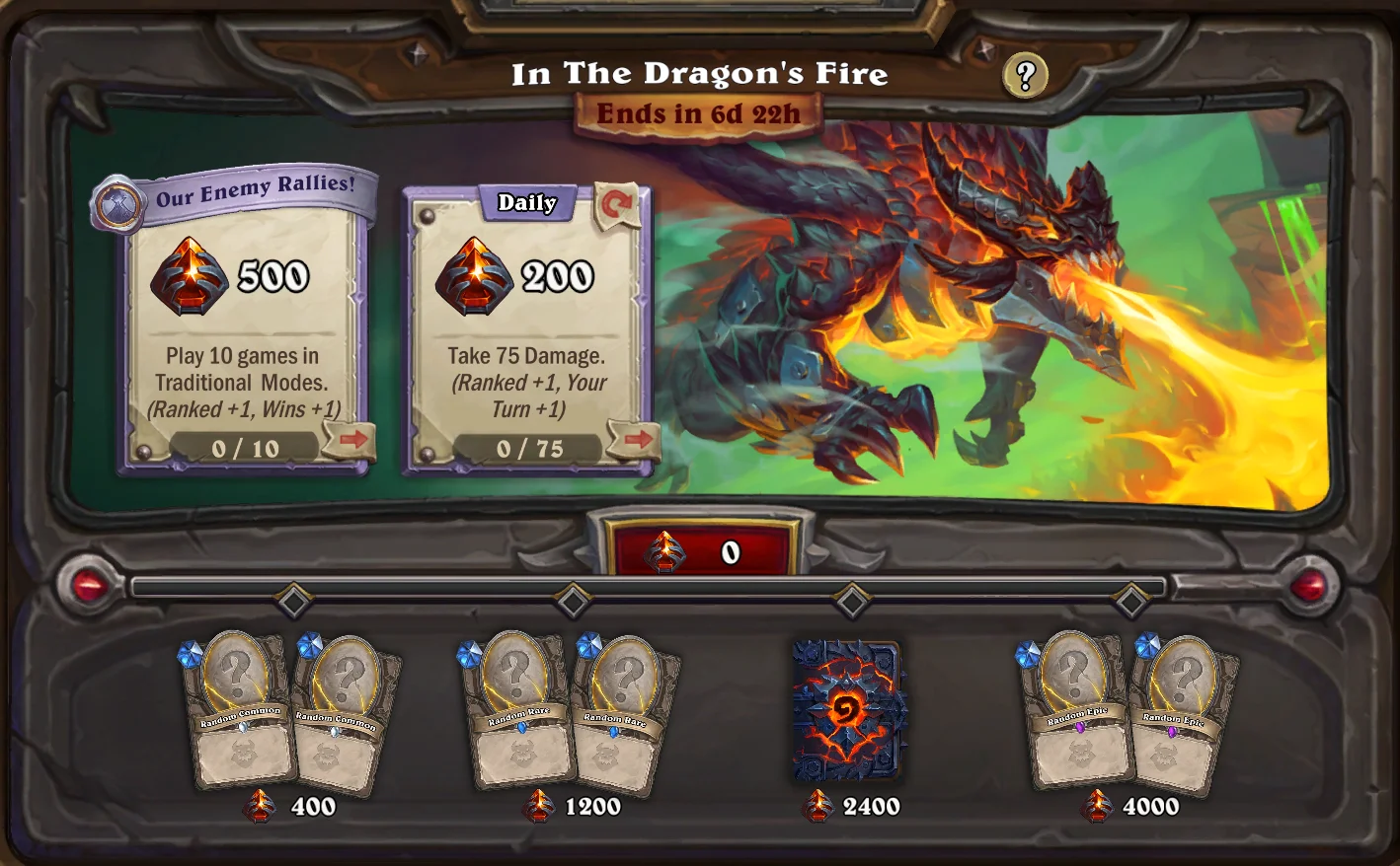 In The Dragon's Fire is a Hearthstone in-game event running from April 7, 2026 through April 14, 2026. This week-long event brings an event track to the in-game journal which will allow you to earn experience through a variety of quest sources to unlock rewards.