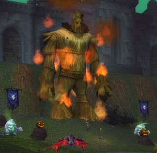 The holiday was celebrated nationally in Lordaeron by erecting a straw effigy outside the palace, which would be lit on fire at sunset on the night of the final ceremony. Customarily, anyone who wished could approach the fiery effigy and symbolically toss a branch into the fire. This action represented “burning away” anything they wanted to let go of as they entered into the inactive time of winter. For example, it might be a method of letting go of fears, sorrows, lost loves, or recent rivalries. On one occasion, shortly before the third war, the ritual of burning the wickerman was performed by Jaina Proudmoore during her courtship with Lordaeron’s own Prince Arthas.