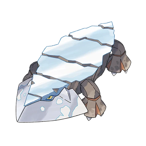 The armor of ice covering its lower jaw puts steel to shame and can shatter rocks with ease. This Pokémon barrels along steep mountain paths, cleaving through the deep snow.