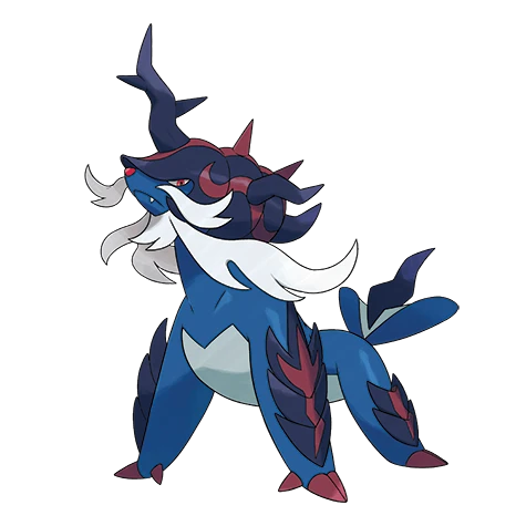 Hard of heart and deft of blade, this rare form of Samurott is a product of the Pokémon's evolution in the region of Hisui. Its turbulent blows crash into foes like ceaseless pounding waves.