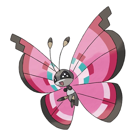 The patterns on this Pokémon’s wings depend on the climate and topography of its habitat. It scatters colorful scales.