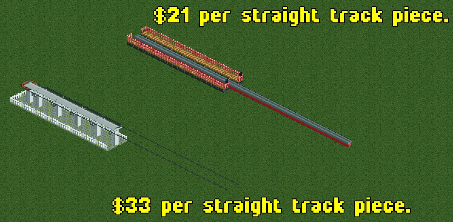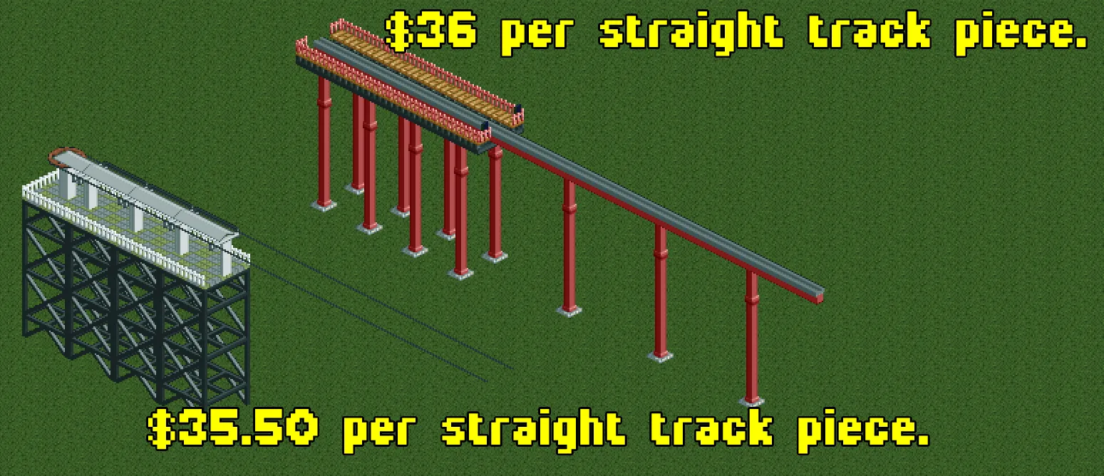- Cost of Straight Track Piece on Fully Flat Ground: $32.00 (Vanilla RCT2)/$32.50 (OpenRCT2)