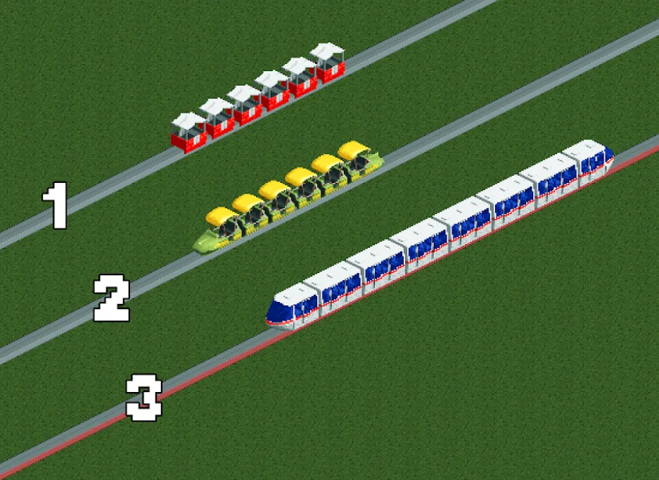 - Default vehicle: RCT1 Small Monorail Cars
