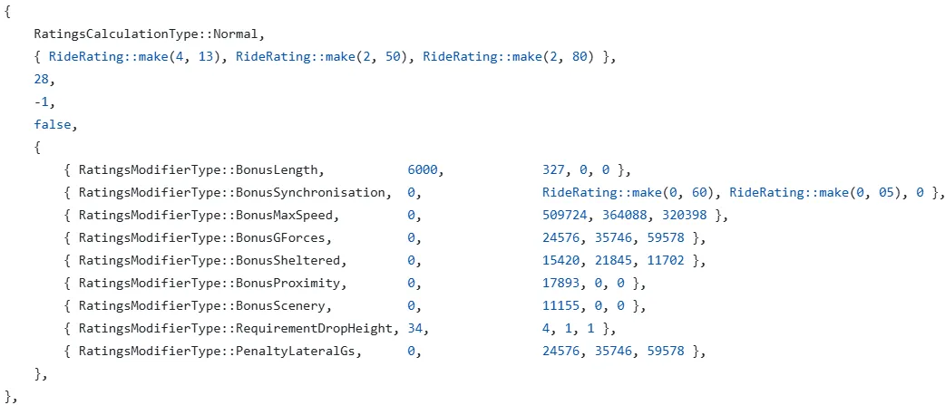 *Ride ratings and statistics are measured using the ride with scenery (if it includes it), its default vehicle, and operating functions. Building the ride without scenery, as well as changing the vehicle type or operating functions will affect the results.
