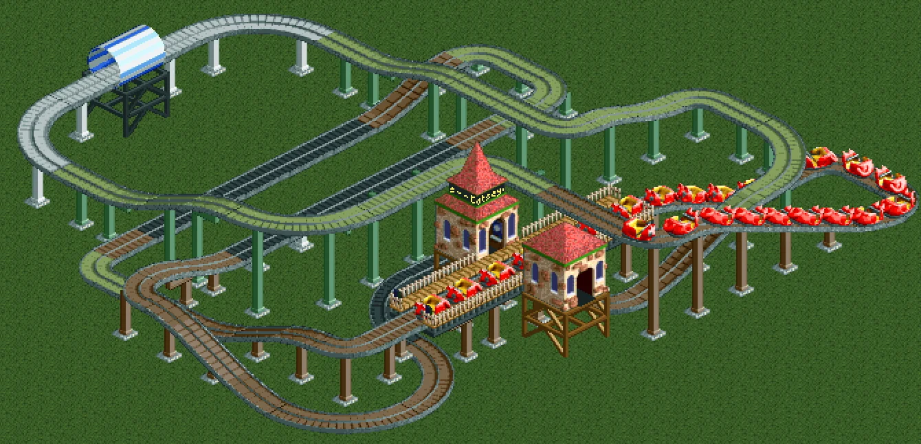 There is also very quirky behavior with rides that perform multiple laps of the same track. The track length itself is only counted once, but the amount of sheltered track is counted per lap, meaning that the more laps your track performs, the less of the track needs to be covered for the ride to be sheltered.