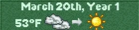To determine what temperature should currently be active, the game takes the base temperature of the current month and applies the temperature modifier value associated with the current weather type. March in the Warm climate has a base temperature of 12C, which means that the temperature will be 17C if it's Partially Cloudy, or 22C if it's Sunny after adding the temperature modifiers of those weather types.