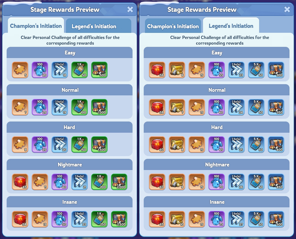 New level of difficulty introduced. Previous Legend Initiations renamed to Epic Initiations. I will fill this section as I go through the difficulties. And I will redo the pictures for Epic Initiation when I have time. The numbers should be the same, just need to change the name.