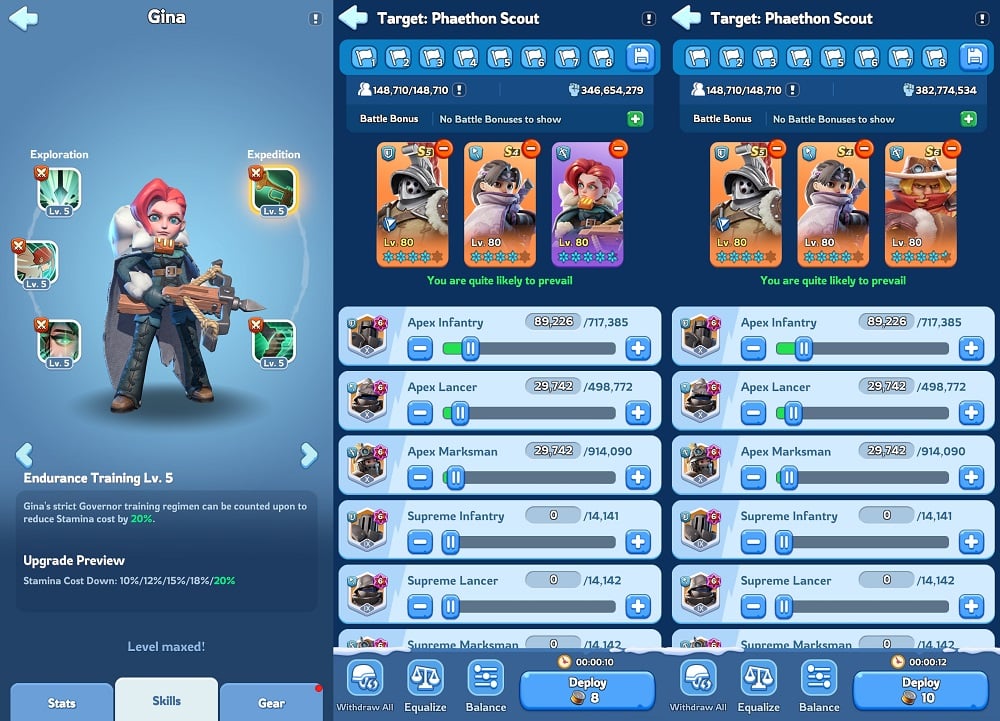 Once you select and confirm your chosen difficulty, you will have an option to scout Phaethon Soldiers. In the event page, you can also see the projected power of each Phaethon Soldier and your current highest attained Stage Reward to be received after the event.